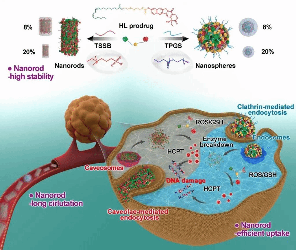 何仲贵教授和孙进教授团队近年来在小分子自组装前药领域进行了深入的研究,首次提出二硫键等化学桥连可以促进疏水性小分子前药的自组装(Nano Lett., 2014, 14(10): 5577-5583; Nano Lett., 2016, 16(9): 5401-5408; Nano Lett., 2018, 18(6): 3643-3650; Small, 2016, 12(46): 6353-6362.),首次开发二硒键、三硫键等新型化学桥连应用于小分子自组装前药中(Nat Commun., 2019, 10(1): 1-10; Sci Adv, 2020, 6(45): eabc1725; Small, 2020, 16(45): 2005039; Sci Adv, 2021, 7(16): eabg0880.),提高了前药的自组装能力和肿瘤响应药物释放行为,并进行了综述报道(Small, 2021: 2101460.)。